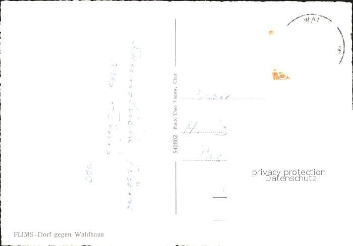 11837108 alte Postkarte Flims Dorf gegen Waldhaus postalisch gelaufen Erhaltung siehe scans KatCode: 11470100320120