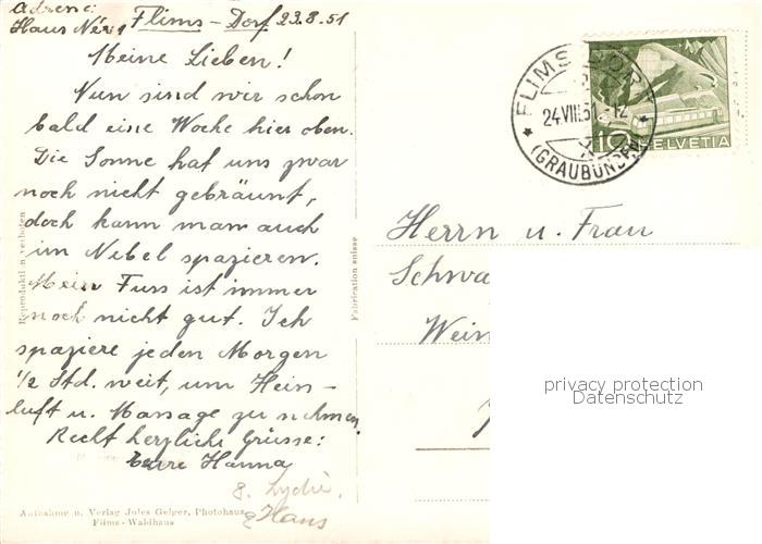 13869422 alte Postkarte Flims Dorf mit Flimsersteig postalisch gelaufen Erhaltung siehe scans [WerneD78] KatCode: 11470100320120