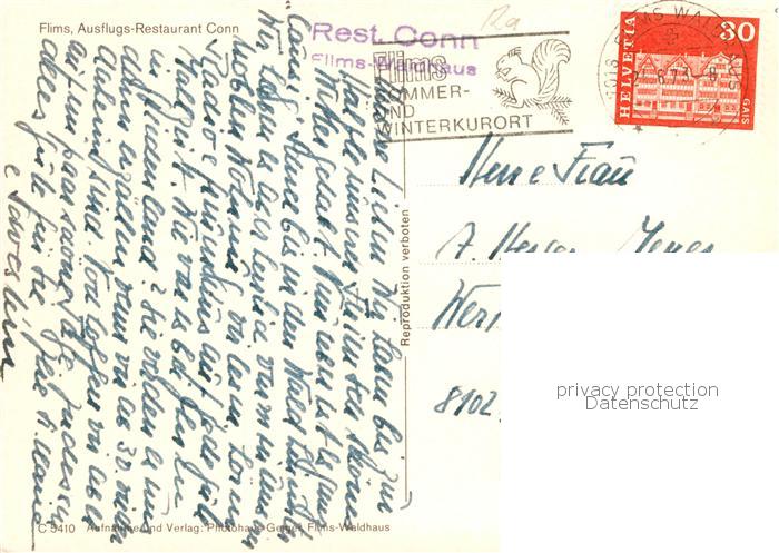 13866246 alte Postkarte Flims GR Ausflugs Restaurant Conn postalisch gelaufen Erhaltung siehe scans [WerneD78] KatCode: 11470100320120