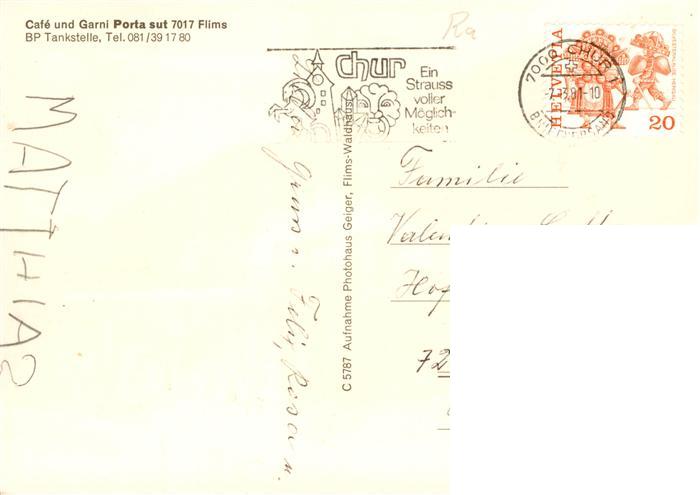 13891277 alte Postkarte Flims GR Cafe und Garni Porta sut mit BP Tankstelle postalisch gelaufen Erhaltung siehe scans [WerneD78] KatCode: 11470100320120