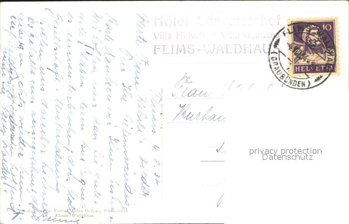 12029751 alte Postkarte Flims GR und die Waldhaeuser von Spalegna aus postalisch gelaufen Erhaltung siehe scans KatCode: 11470100320120