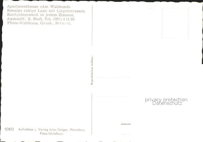 11634287 Flims Waldhaus Apartmenthouse Am Waldrand postalisch nicht gelaufen Erhaltung siehe scans KatCode: 11470100320122