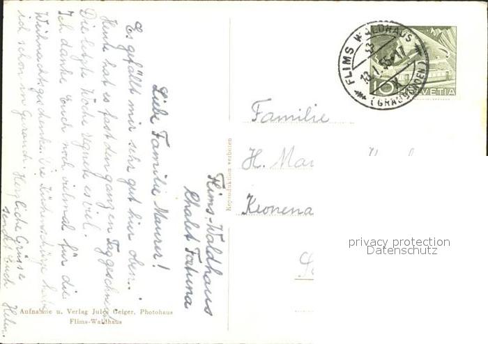 11634327 alte Postkarte Flims Waldhaus Eisbahn Schlittschuhlaufen postalisch gelaufen Erhaltung siehe scans KatCode: 11470100320122