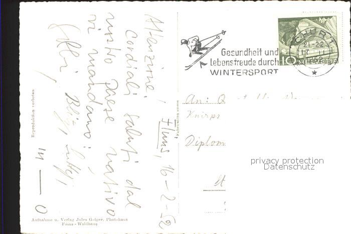 11837354 alte Postkarte Flims Waldhaus Foppa Skispuren postalisch gelaufen Erhaltung siehe scans KatCode: 11470100320122