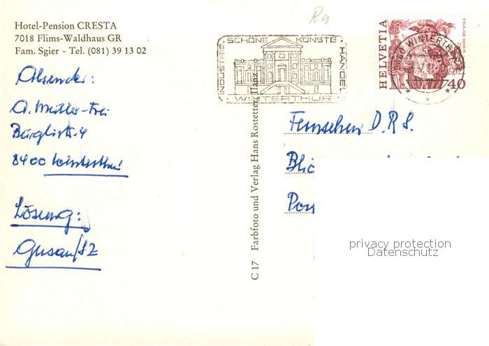 13870789 Flims Waldhaus Hotel Pension Cresta postalisch nicht gelaufen Erhaltung siehe scans [WerneD78] KatCode: 11470100320122