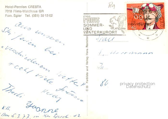 13870787 alte Postkarte Flims Waldhaus Hotel Pension Cresta postalisch gelaufen Erhaltung siehe scans [WerneD78] KatCode: 11470100320122