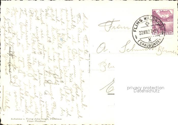 11634329 alte Postkarte Flims Waldhaus Hotel Schweizerhof und Villa Helvetia postalisch gelaufen Erhaltung siehe scans KatCode: 11470100320122