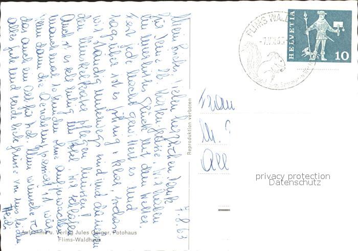 11634334 alte Postkarte Flims Waldhaus Hotel Surselva postalisch gelaufen Erhaltung siehe scans KatCode: 11470100320122