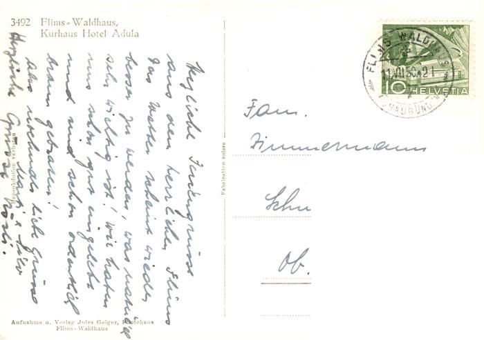 13888551 alte Postkarte Flims Waldhaus Kurhaus Hotel Adula postalisch gelaufen Erhaltung siehe scans [WerneD78] KatCode: 11470100320122