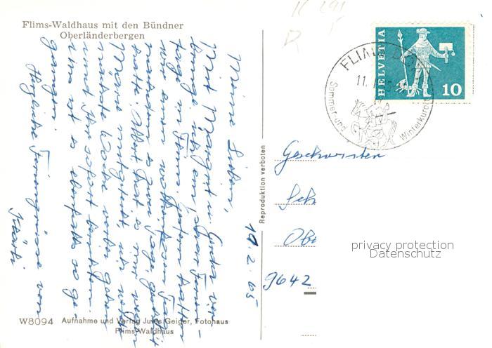 13869426 alte Postkarte Flims Waldhaus mit den Buendner Oberlaenderbergen postalisch gelaufen Erhaltung siehe scans [WerneD78] KatCode: 11470100320122