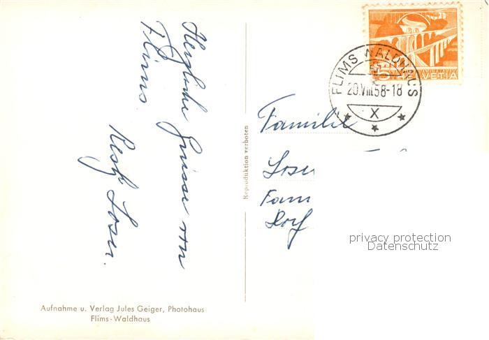 13854228 alte Postkarte Flims Waldhaus mit Kirche und Signinagruppe postalisch gelaufen Erhaltung siehe scans [WerneD78] KatCode: 11470100320122