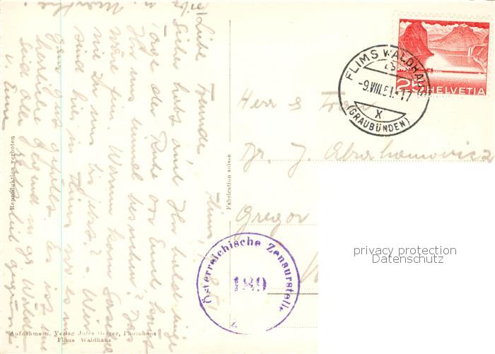 13870107 alte Postkarte Flims Waldhaus mit Piz Riein postalisch gelaufen Erhaltung siehe scans [WerneD78] KatCode: 11470100320122