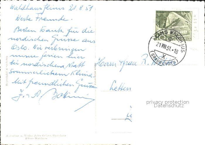 11635739 alte Postkarte Flims Waldhaus Panorama mit Flimserstein postalisch gelaufen KatCode: 11470100320122