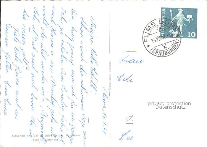 11637827 alte Postkarte Flims Waldhaus und Dorf gegen den Segnespass postalisch gelaufen Erhaltung siehe scans KatCode: 11470100320122