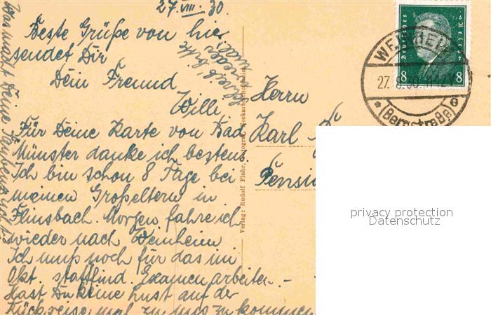 32664799 alte Postkarte Flinsbach Kirche mit Schulhaus postalisch gelaufen Erhaltung siehe scans [LiesaD40] KatCode: 11110008226106