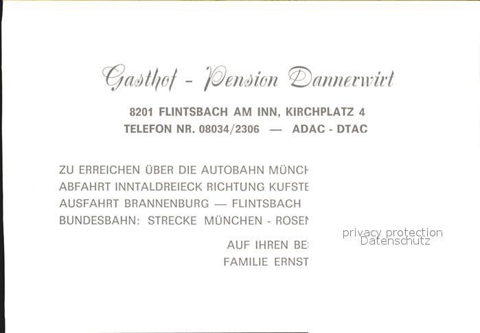72534233 Flintsbach Inn Gasthof Pension Dannerwirt Ortsansicht mit Kirche Alpenblick postalisch nicht gelaufen Werbekarte (keine Postkarte) Erhaltung siehe scans [FriedD77 kt118box] KatCode: 11110009187131