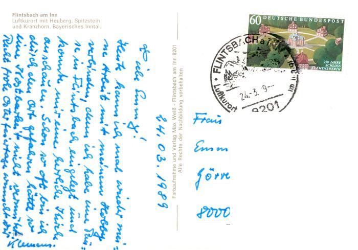73879284 alte Postkarte Flintsbach Inn mit Heuberg Spitzstein und Kranzhorn Fliegeraufnahme postalisch gelaufen Erhaltung siehe scans [WerneD78] KatCode: 11110009187131