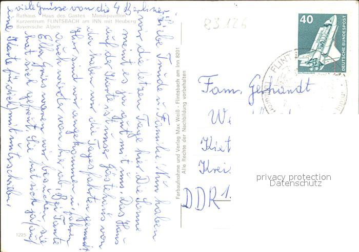 71994446 alte Postkarte Flintsbach Inn Rathaus Haus Gastes Musikpavillon Kurzentrum Heuberg postalisch gelaufen Erhaltung siehe scans KatCode: 11110009187131