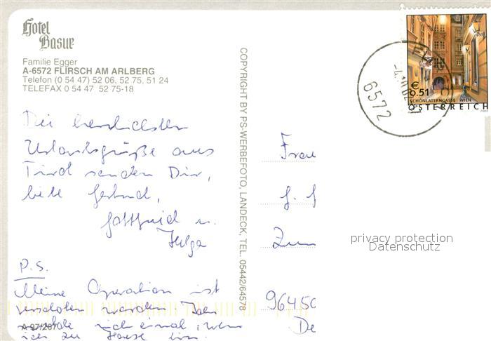 73197017 alte Postkarte Flirsch Hotel Basur postalisch gelaufen Erhaltung siehe scans [KathaD81] KatCode: 11390334070605