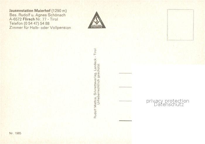 13170234 Flirsch Jausenstation Maierhof postalisch nicht gelaufen Erhaltung siehe scans [KathaD81] KatCode: 11390334070605