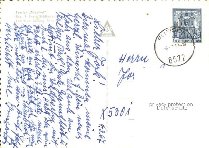 72492360 alte Postkarte Flirsch Pension Zirbelhof postalisch gelaufen Erhaltung siehe scans KatCode: 11390334070605