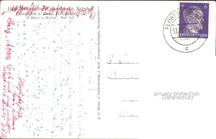 32099316 alte Postkarte Floersheim Main Gasthaus zum Bahnhof postalisch gelaufen Erhaltung siehe scans KatCode: 11110006436004