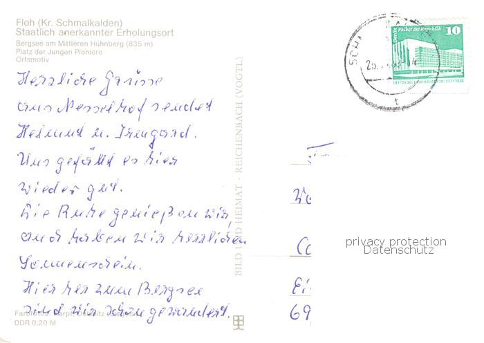 73842055 alte Postkarte Floh-Seligenthal Bergsee Mittlerer Huehnberg Platz der Jungen Pioniere Ortsmotiv postalisch gelaufen Erhaltung siehe scans [FriedD77] KatCode: 11110016066023