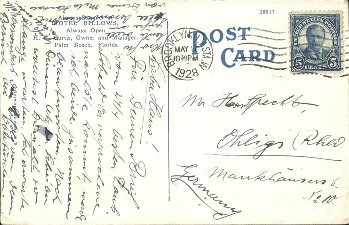 11312324 old postcard Florida Hotel Billows Palm Beach postalisch gelaufen gute Erhaltung KatCode: 14140340000000