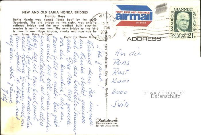71940562 old postcard Florida Keys Bahia Honda Bridge Fliegeraufnahme postalisch gelaufen Erhaltung siehe scans KatCode: 14140110000000