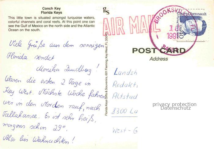 74033805 old postcard Florida Keys Florida USA Aerial view postalisch gelaufen Fliegeraufnahme Erhaltung siehe scans [FriedD77] KatCode: 14140110000000