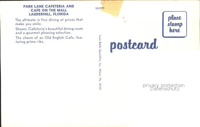 71940905 Florida Keys Park Lane Cafeteria and Cafe on the Mall Lauderhill postalisch nicht gelaufen Erhaltung siehe scans KatCode: 14140110000000