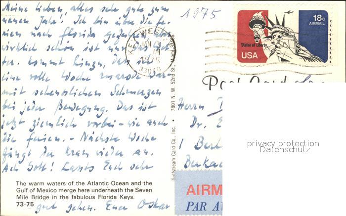 72167561 old postcard Florida Keys Seven Mile Bridge Atlantic Ocean and Gulf of Mexiko Air view postalisch gelaufen Erhaltung siehe scans KatCode: 14140110000000
