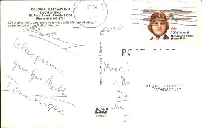 72289697 old postcard Florida US-State Colonial Gateway Inn Saint Pete Beach postalisch gelaufen Erhaltung siehe scans KatCode: 14140110000000