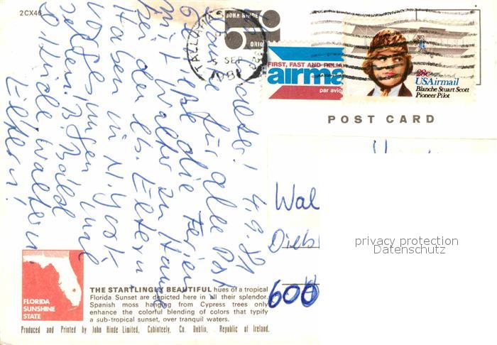 72766136 old postcard Florida US-State Colorful Sunset postalisch gelaufen Erhaltung siehe scans [LiesaD40] KatCode: 14140110000000
