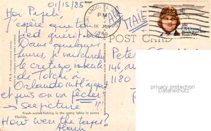 73127744 old postcard Florida US-State Frischwasser Fischen postalisch gelaufen Erhaltung siehe scans [KathaD81] KatCode: 14140110000000