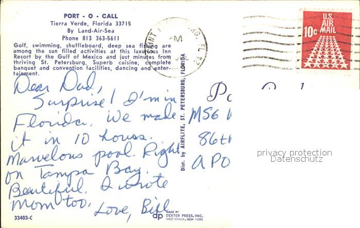 72456663 old postcard Florida US-State Hafen Tierra Verde postalisch gelaufen Erhaltung siehe scans KatCode: 14140110000000