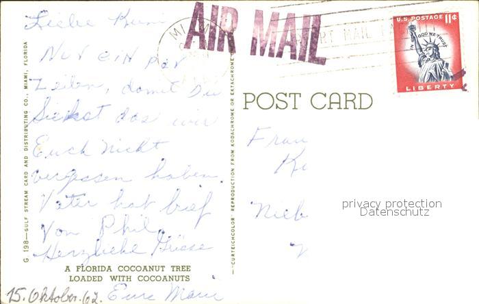 72272287 old postcard Florida US-State Kokosnussbaum postalisch gelaufen Erhaltung siehe scans KatCode: 14140110000000