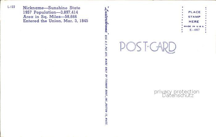 11686159 Florida US-State Landkarte Sunshine State postalisch nicht gelaufen Erhaltung siehe scans KatCode: 14140110000000