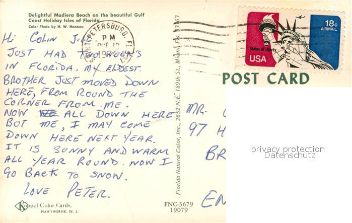 73131657 old postcard Florida US-State Madiera Beach postalisch gelaufen Erhaltung siehe scans [KathaD81] KatCode: 14140110000000