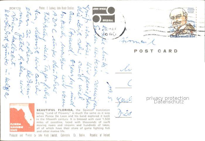72370992 old postcard Florida US-State Strand Merr Keys postalisch gelaufen Erhaltung siehe scans KatCode: 14140110000000