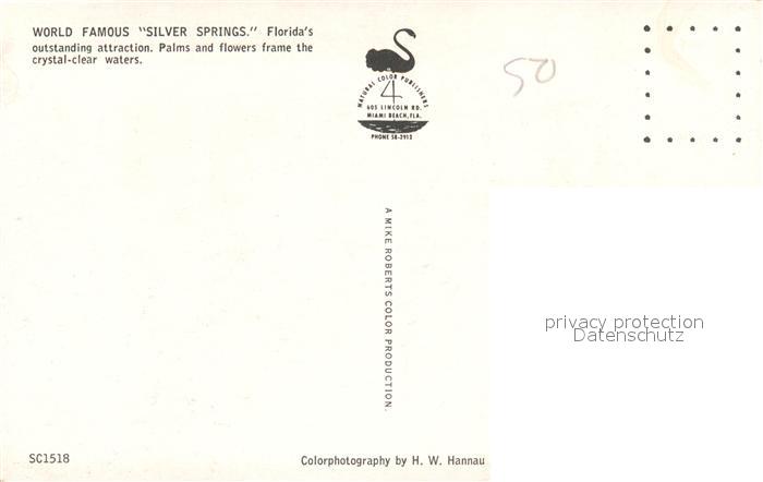 73130570 Florida US-State World Famous Silver Springs postalisch nicht gelaufen Erhaltung siehe scans [KathaD81] KatCode: 14140110000000