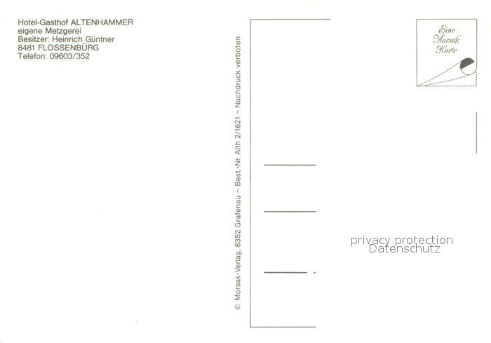73652247 Flossenbuerg Hotel Gasthof Altenhammer postalisch nicht gelaufen Erhaltung siehe scans [WerneD78] KatCode: 11110009374122