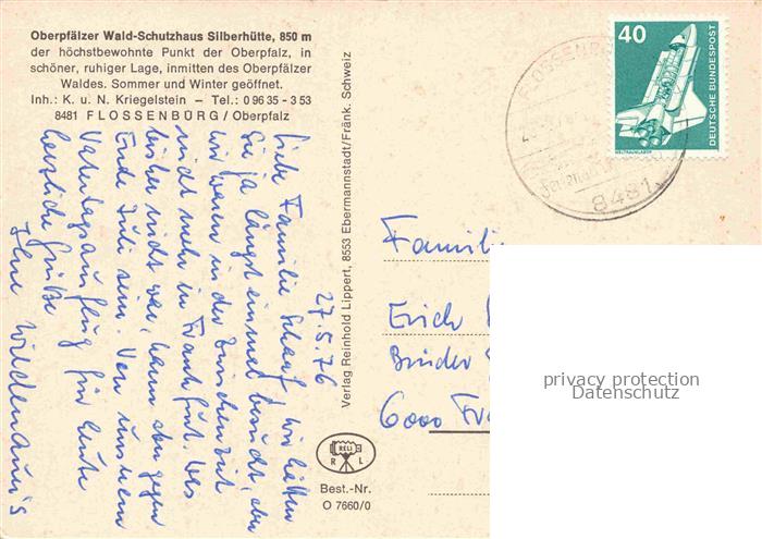 74049367 alte Postkarte Flossenbuerg Oberpfaelzer Wald-Schutzhaus Silberhuette postalisch gelaufen Erhaltung siehe scans [FriedD77] KatCode: 11110009374122