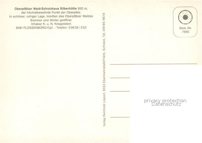 73652246 Flossenbuerg Oberpfaelzer Wald Schutzhaus Silberhuette postalisch nicht gelaufen Erhaltung siehe scans [WerneD78] KatCode: 11110009374122