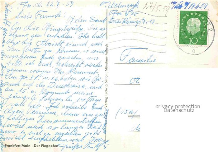 74020230 alte Postkarte Flughafen Airport Aeroporto Farnkfurt Main postalisch gelaufen Erhaltung siehe scans [IrynaD87] KatCode: 22120