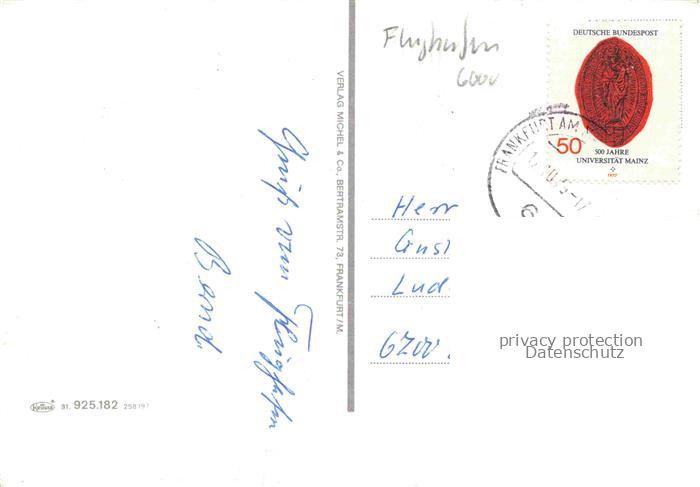 74051476 alte Postkarte Flughafen Airport Aeroporto Frankfurt Rhein Main Lufthansa postalisch gelaufen Erhaltung siehe scans [SanaeD93] KatCode: 22120