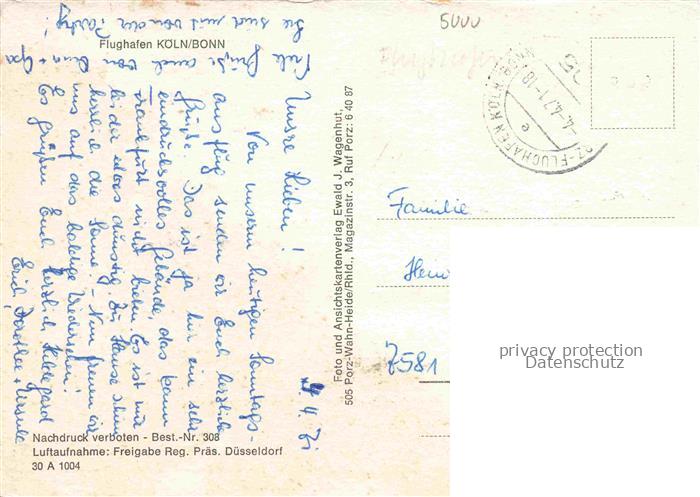 74041216 alte Postkarte Flughafen Airport Aeroporto Koeln Bonn postalisch gelaufen Erhaltung siehe scans [SanaeD93] KatCode: 22120