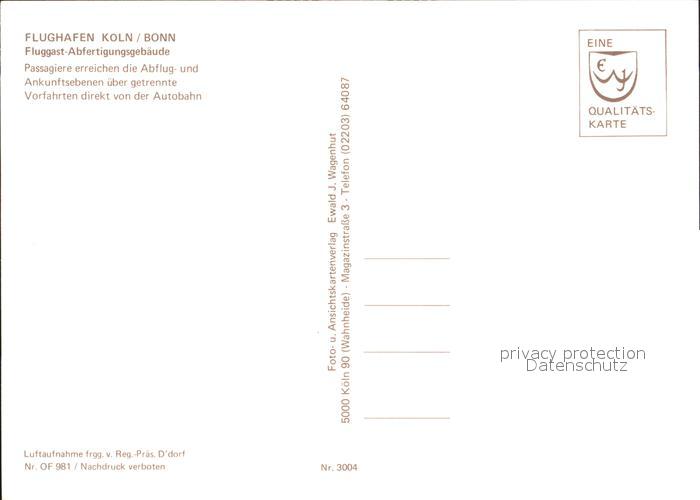 Flughafen Airport Aeroporto Koeln/Bonn Fluggast-Abfertigungshalle Fliegeraufnahme postalisch nicht gelaufen Erhaltung siehe scans