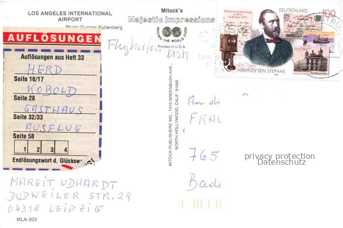 74041222 alte Postkarte Flughafen Airport Aeroporto Los Angeles postalisch gelaufen Erhaltung siehe scans [SanaeD93] KatCode: 22120