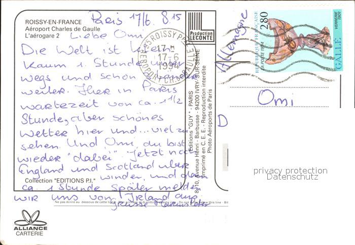 alte Postkarte Flughafen Airport Aeroporto Roissy-en-France Aeroport Charles de Gaulle Aerogare 2 postalisch gelaufen Erhaltung siehe scans